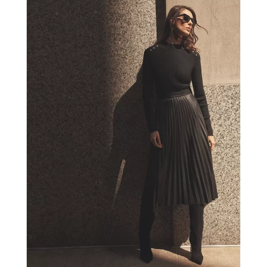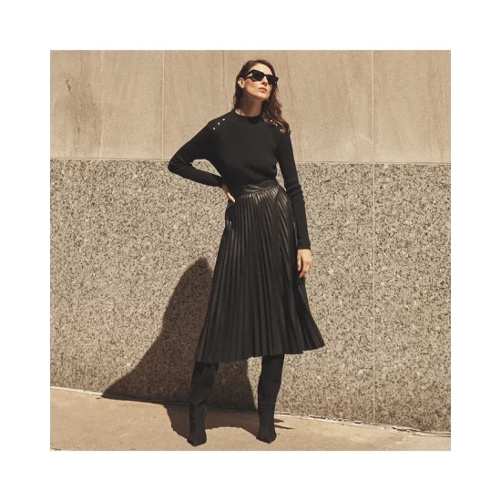 - Pleated A-line silhouette
